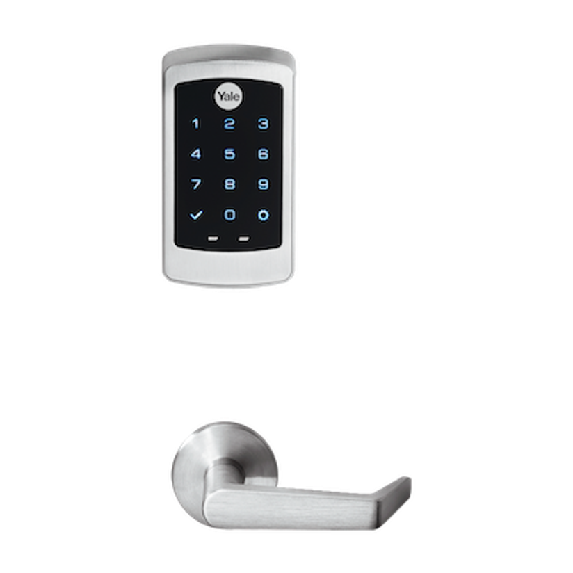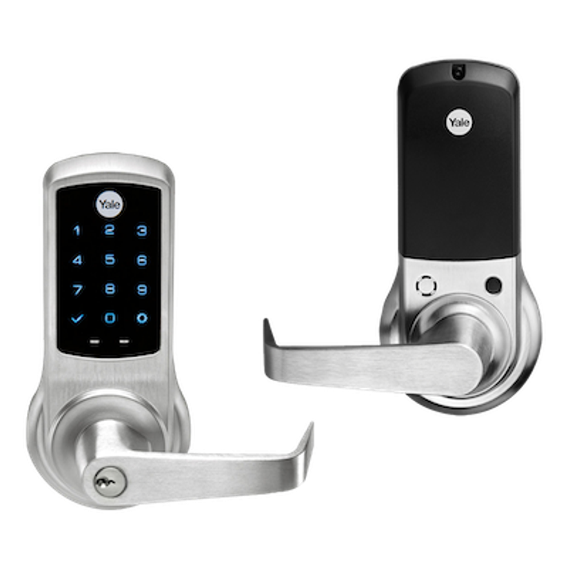 The Yale nexTouch Commercial Keypad Door Lock NTB620 lives up to its name, serving your multi-family building, small business office, shop space, hotel airport, or mixed-use commercial building. Versatile with a smooth, modern look, this mechanical keypad electronic lock is the perfect choice for your commercial rental property, reflecting the durability and security that Yale is known for. The lock combines the reliability of a mechanical locking system with the convenience of electronic access control.